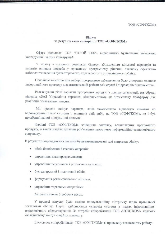за результатами співпраці з ТОВ «СОФТКОМ»