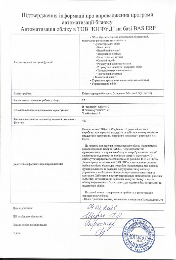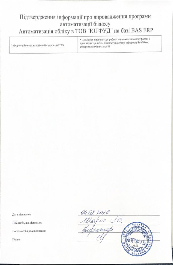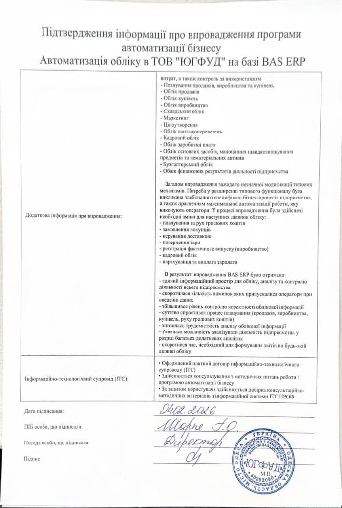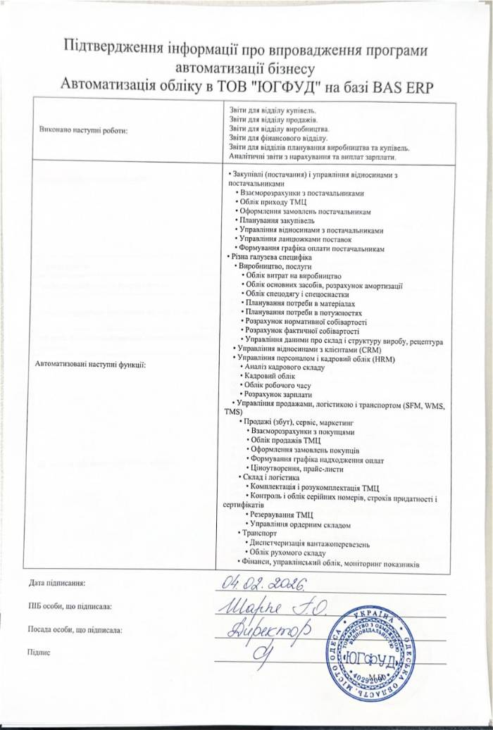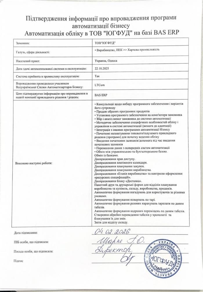 Автоматизація обліку в ТОВ "ЮГФУД" на базі BAS ERP